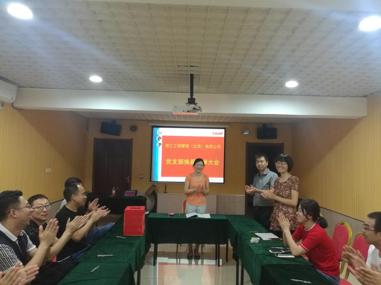 9月15日下午16:00,德汇公司党支部委员会根据2017年9月11日的批复,组织召开党支部大会进行了换届选举。应到党员9名(其中有表决权的正式党员9名),实到8名(其中有表决权的正式党员8名),占党员总数的89%,1人因事缺席。