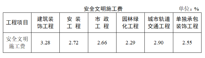 2.2023年1月1日后新开工的建筑安装工程,以及结转工程未完工部分,安全文明施工费费用标准按下表进行调整:
