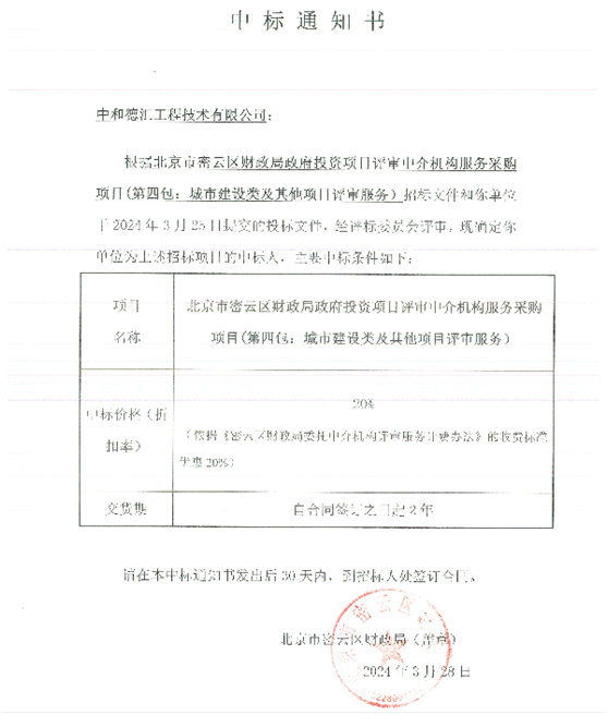 热烈祝贺我司顺利中标:北京市密云区财政局政府投资项目评审中介机构服务采购项目。