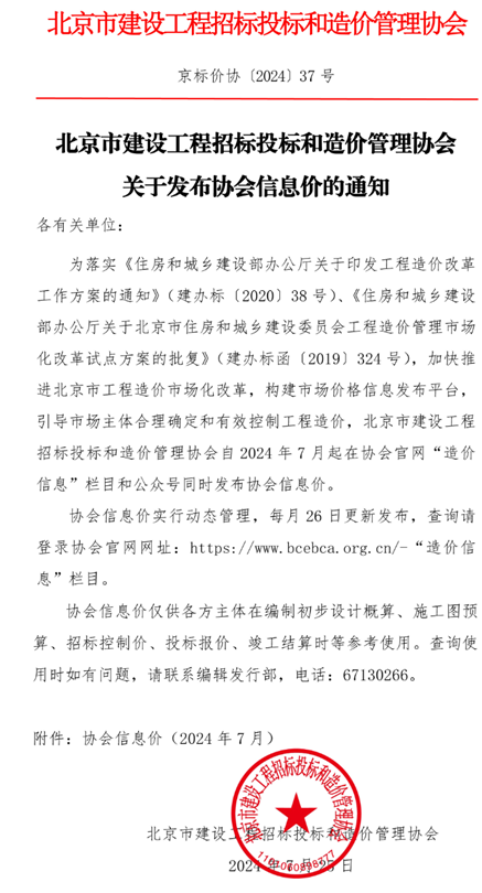 北京市建设工程招标投标和造价管理协会《关于发布协会信息价的通知》