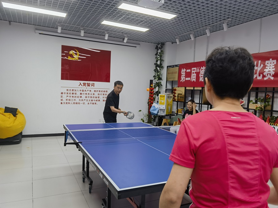 主题活动-乒乓球比赛环节,我们在盈坤党群服务中心分别进行了女单、男单和女双、男双比赛,原则是友谊第一、比赛第二!主旨是快乐乒乓、拥抱健康!赛场上,参赛队员攻防搓球、奋力扣杀,激情洋溢;赛场外,啦啦队加油声、助威声此起彼伏,赢得阵阵喝彩。整个比赛充满激情与欢乐,充分展示了团结合作、奋勇争先的良好精神风貌。经过几轮角逐,最终詹总取得女单第一名,第二名综合部赵冬梅,第三名设计中心陈绍婷;段总取得男单第一名,第二名设计中心张宇首,第三名造价二部张磊;设计中心陈绍婷和毛琴取得女双第一名,第二名综合市场部赵冬梅和保梦云,第三名造价二部孙晓珊和刘贵娟;造价二部张磊和胡耀宗取得男双第一名,第二名招标技术部王金良和陈奕培,第三名审计中心王新杰和秦振宇。