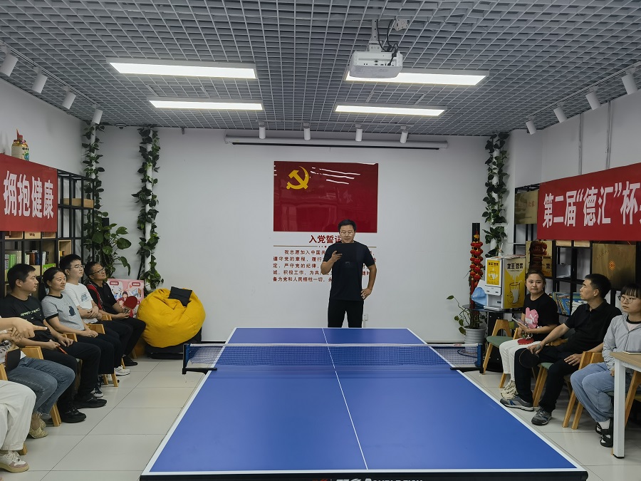今年是中和德汇公司成立20周年,8月30日下午公司联合盈坤党群共同组织党建座谈会及主题活动-乒乓球比赛启动。盈坤党群总干事项老师、工作站杨老师应邀参加会议,公司党支部书记詹总、公司总经理李总以及在公司的党员、积极分子、部门经理和秘书全程参加活动。