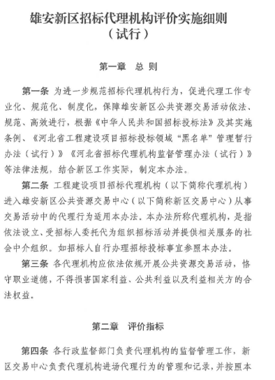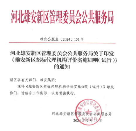 河北雄安新区管理委员会公共服务局关于印发《雄安新区招标代理机构评价实施细则(试行)》的通知